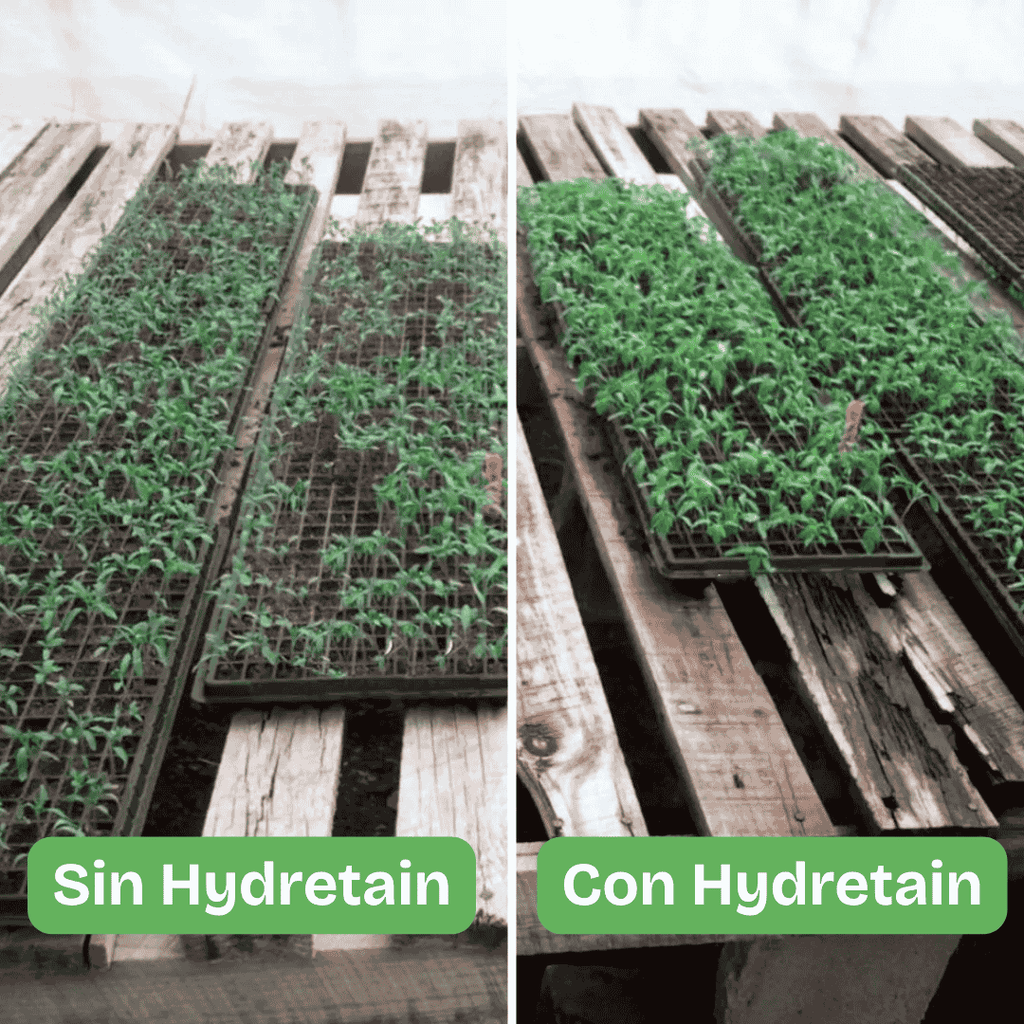 Hydretain caja 950 ml x16. Administrador de humedad para mayor supervivencia con menos agua. Para cultivos, pastos, jardines, plantas de interior, reforestación, revegetalización. Aplicación trimestral.